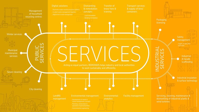 No matter what technology or service we develop within the Group or what experience we may gather, we always make it available to others. The result is a full and complete range of services that have been adapted to meet the exact requirements of our customers and that deliberately unite sustainable development, environmental protection, cost savings and resource conservation. Whilst our services have, in principle, been divided up into two groups – industrial services for companies and public services for local authorities and/or their residents – they often overlap. Some of our services can benefit two or even all three target groups.